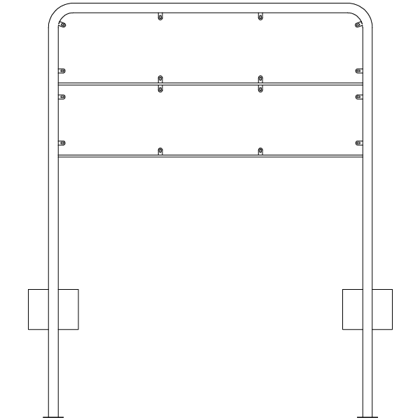 Varmgalvaniserede rørgalger med flaps og bundplade. Rørdimension: Ø48 mm (1,5”). Frihøjde: 50 cm.