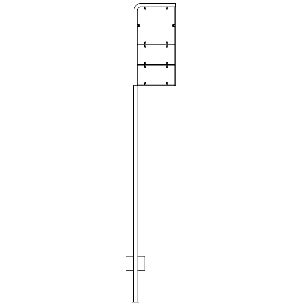 Varmgalvaniseret rørstander med flaps og bundplade. Ramme i fladjern. Øverste del Ø48 mm.