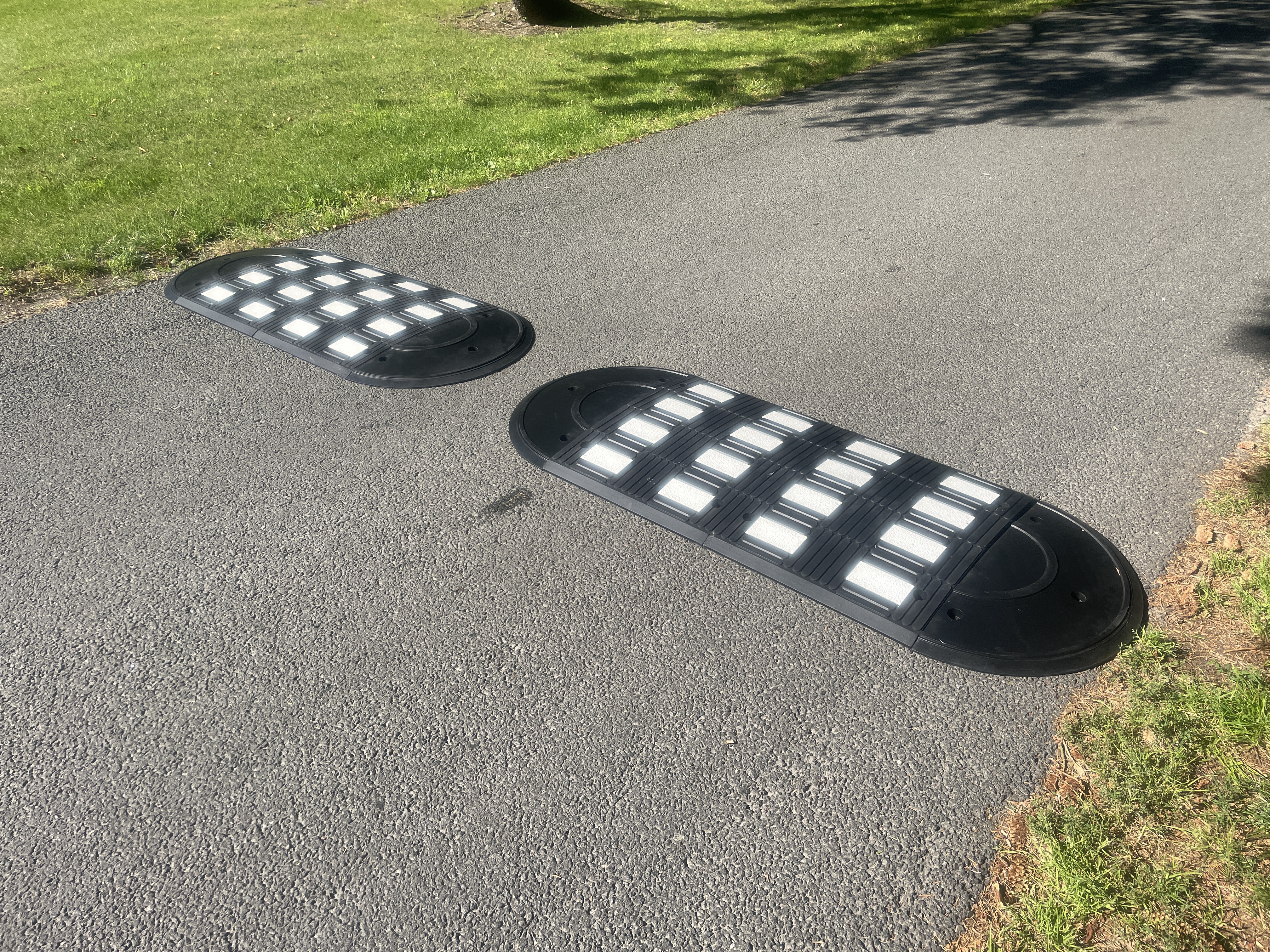 Elementerne fås i sort m/hvid refleks. De har et slidlag af ny og armeret formfast gummi, mens kernen er genbrugsgummi.