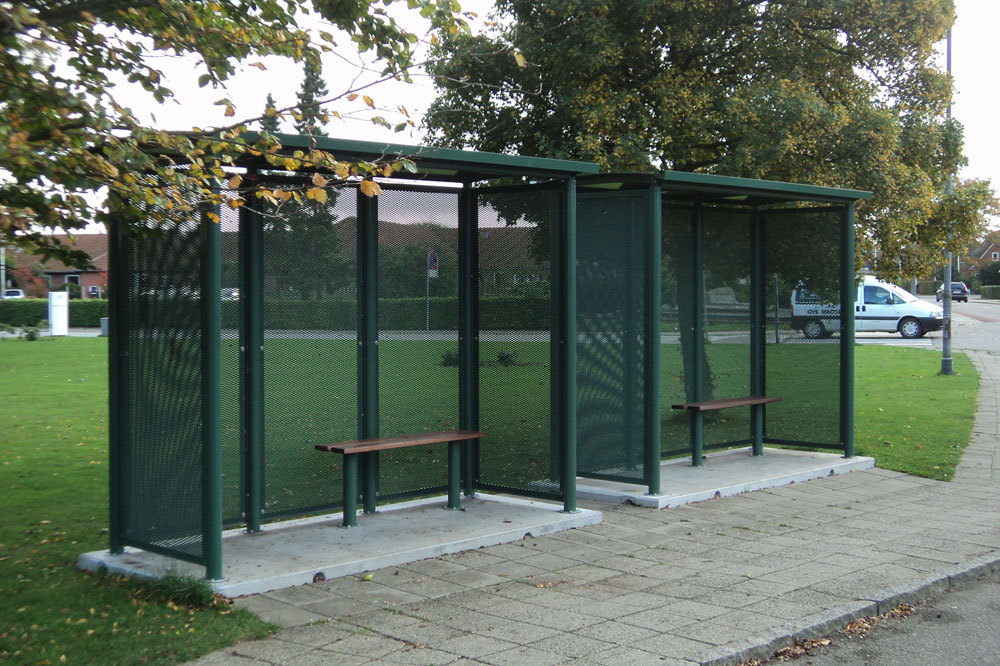 Søjler og bænk er som i alle modeller fra Aluline-serien monteret i et fundament af armeret beton.
