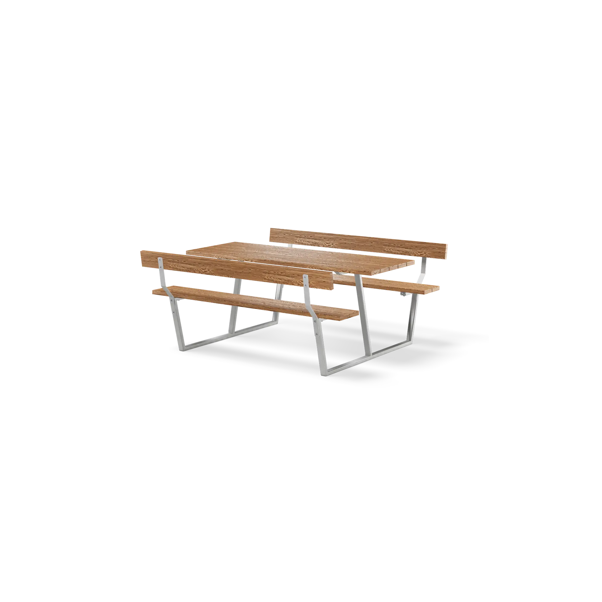 PONGO Rectangle bord/bænksæt er en elegant langbordsløsning med en klassisk rektangulær form, ideel til selskaber på 6-8 personer. En tilgængelighedstilpasset version inkluderer en ekstra lang bordplade med udhæng på begge korte sider, hvilket skaber to naturlige steder for kørestolsbrugere. Dette fleksible bord/bænksæt fås både med og uden ryglæn, tilpasset forskellige præferencer og behov.