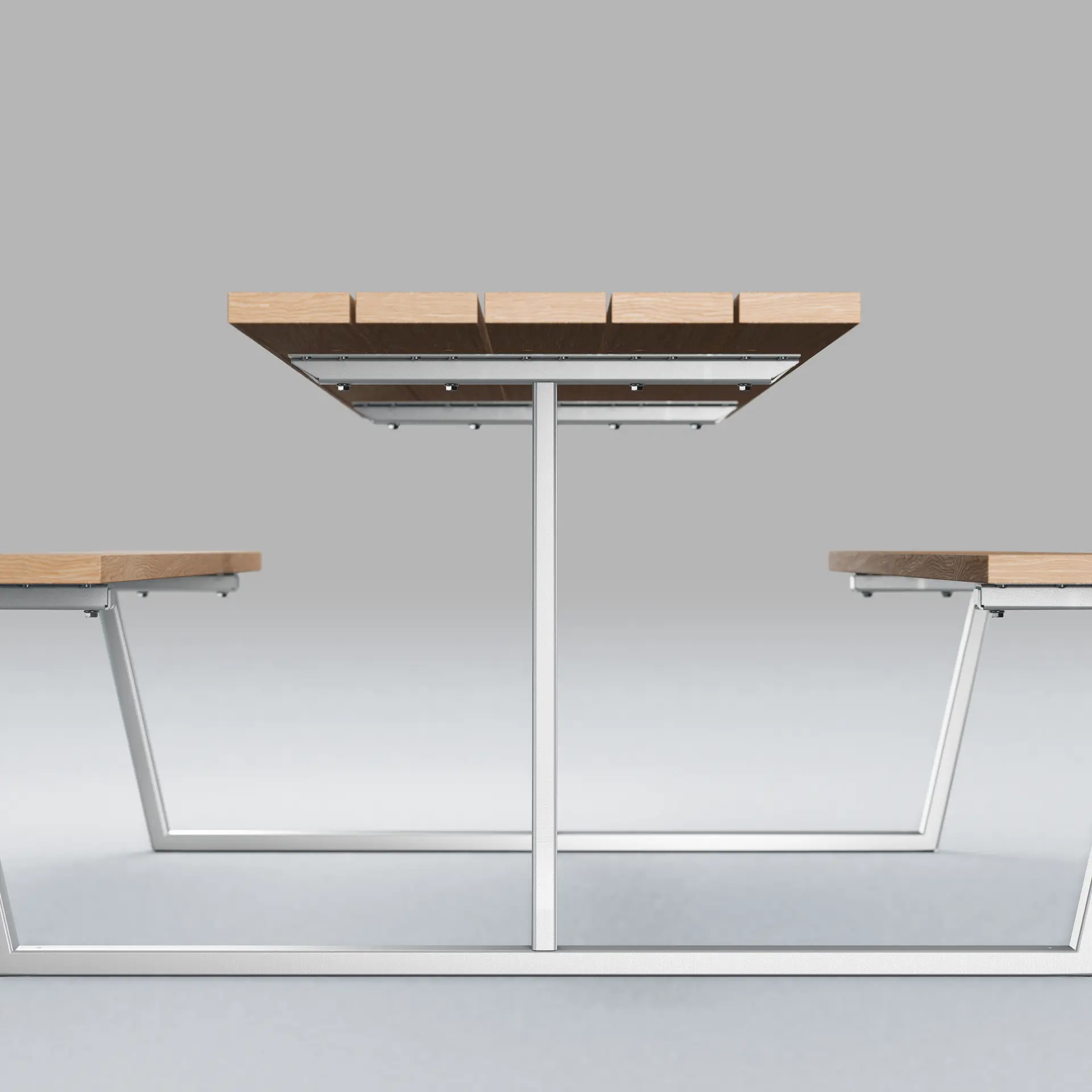 PONGO Rectangle bord/bænksæt er en elegant langbordsløsning med en klassisk rektangulær form, ideel til selskaber på 6-8 personer. En tilgængelighedstilpasset version inkluderer en ekstra lang bordplade med udhæng på begge korte sider, hvilket skaber to naturlige steder for kørestolsbrugere. Dette fleksible bord/bænksæt fås både med og uden ryglæn, tilpasset forskellige præferencer og behov.