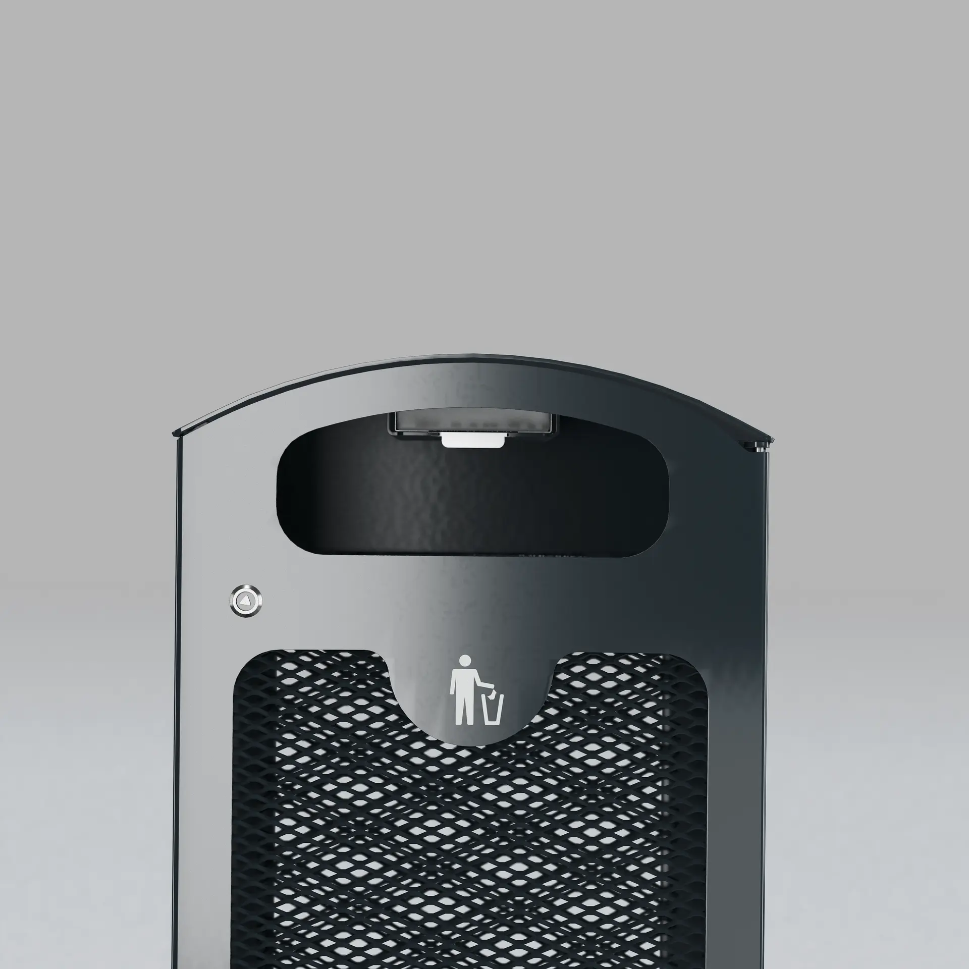 Udførelsen er ergonomisk designet til let tømning uden tunge løft takket være døren, der åbner sidelæns. Det innovative design fungerer også som beskyttelse mod fugle og forhindrer uønsket adgang til indersiden.