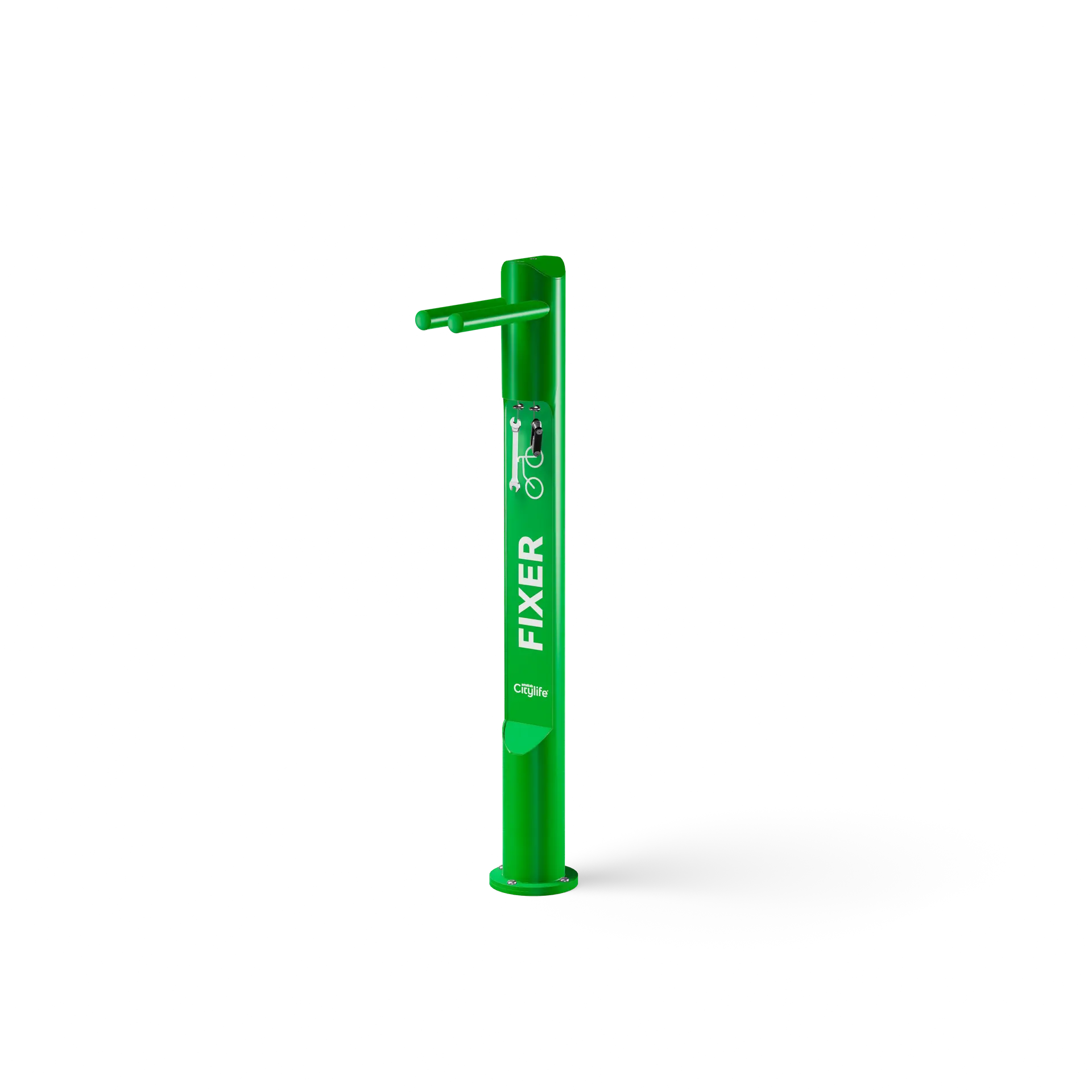 FIXER er det ultimative reparationspunkt for cyklister i bylandskabet. Holderen er specielt designet til offentlig brug og tilbyder en stabil affjedring til alle cykelmodeller. Derudover leverer servicepunktet alle de nødvendige værktøjer til justeringer og reparationer direkte på stedet.